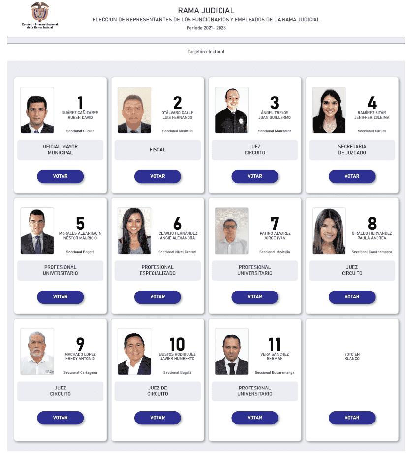 En cumplimiento al Acuerdo 08 de 2021, la Comisión Nacional de Disciplina Judicial socializa la tarjeta electoral y las propuestas de los candidatos inscritos para elegir al representante de los funcionarios y empleados de la Rama Judicial ante la Comisión Interinstitucional.