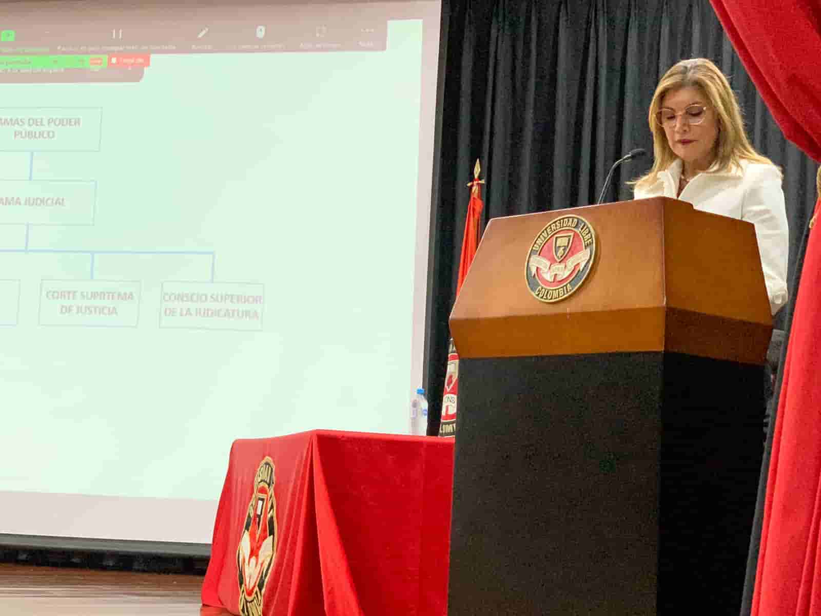 La presidenta de este Alto Tribunal, magistrada Diana Marina Vélez Vásquez, organizó y lideró este evento académico que pretende acercar el Código disciplinario de los abogados con los futuros profesionales. El propósito es continuar con estas jornadas en diferentes universidades del país, para dar herramientas éticas en la práctica del derecho a los estudiantes de último año y consultorio jurídico.