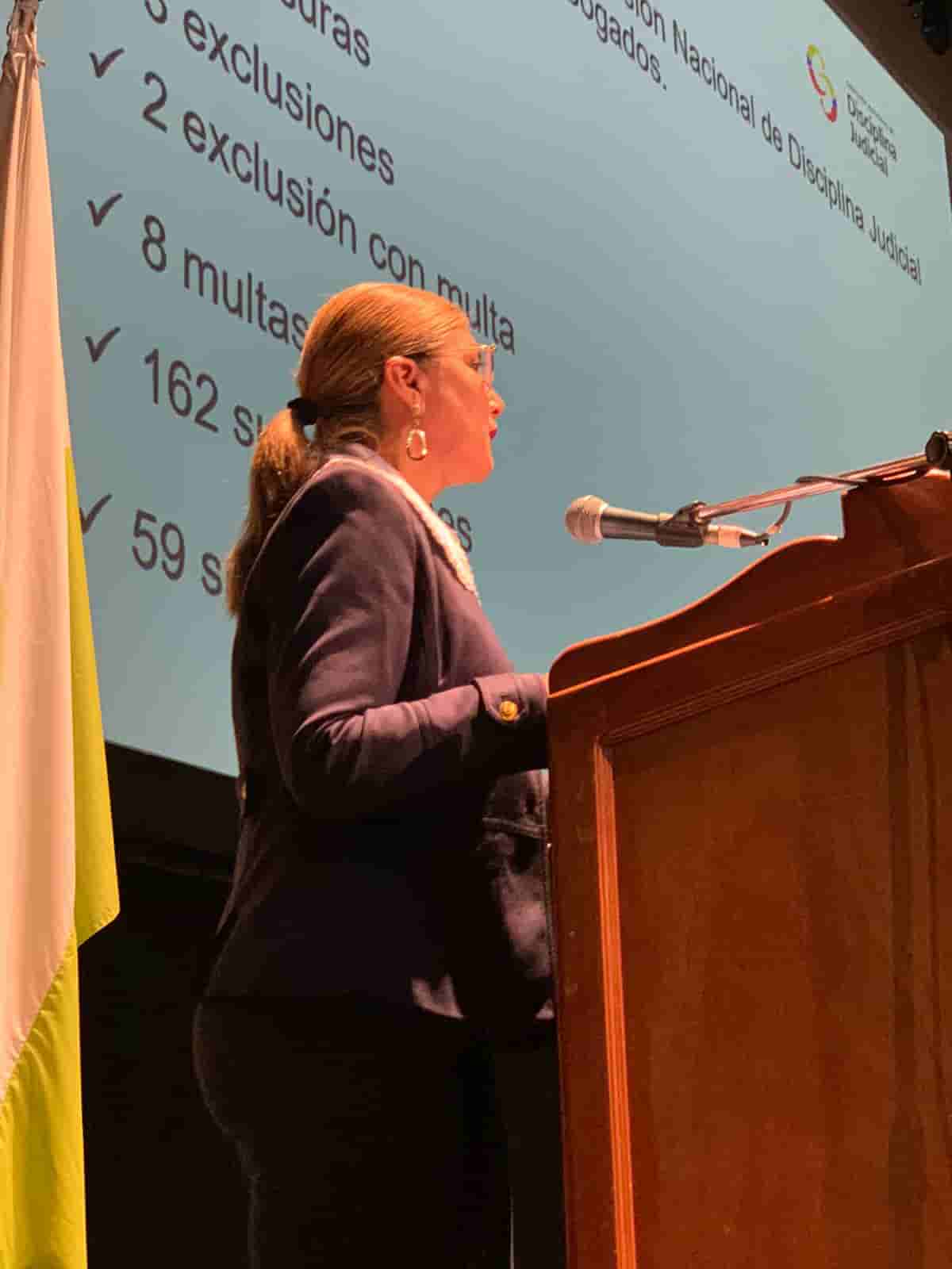 La presidenta de la corporación Diana Marina Vélez Vásquez, la vicepresidenta Magda Victoria Acosta Walteros y los magistrados Juan Carlos Granados Becerra y Mauricio Fernando Rodríguez Tamayo, coincidieron en hacer un llamado a dignificar la profesión y el cumplimiento de los deberes establecidos en la Ley 1123 de 2007.